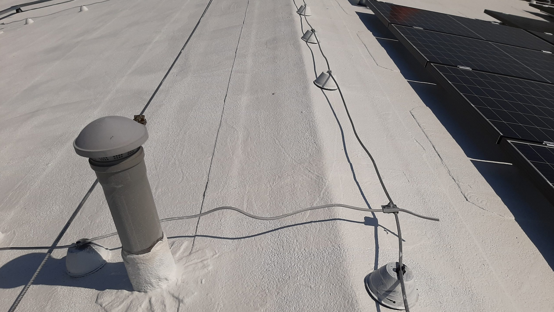 Installation of a security system, lightning protection system, application of the COOL-R coating, installation of a PV installation in a ballast-free system.